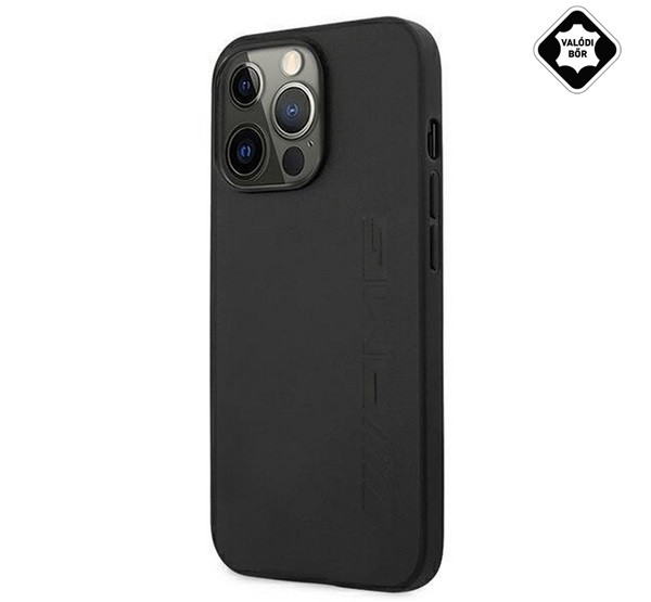 AMG SIGNATURE LEATHER HOT STAMPED műanyag telefonvédő (valódi bőr bevonat) FEKETE