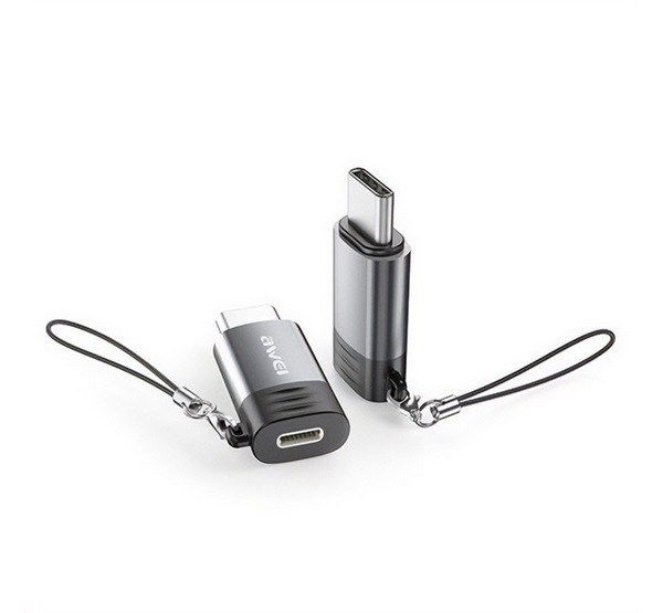 AWEI A12 adapter (lightning aljzat - Type-C, adatátvitel és töltés, OTG) VILÁGOSSZÜRKE