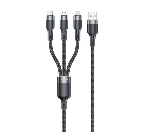 AWEI CL-975 adatkábel 3in1 (USB - Type-C/lightning/microUSB, 100W, gyorstöltő, 120cm) FEKETE