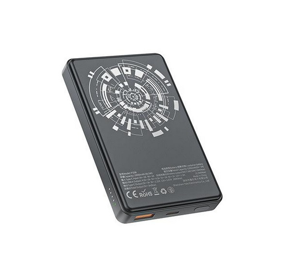 AWEI P33K vésztöltő USB+Type-C aljzat (10000mAh, 22.5W, wireless, mágneses, PD gyorstöltő) FEKETE