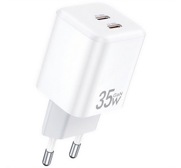 AWEI PD65-EU hálózati töltő 2 Type-C aljzat (35W, GaN, PD gyorstöltő) FEHÉR