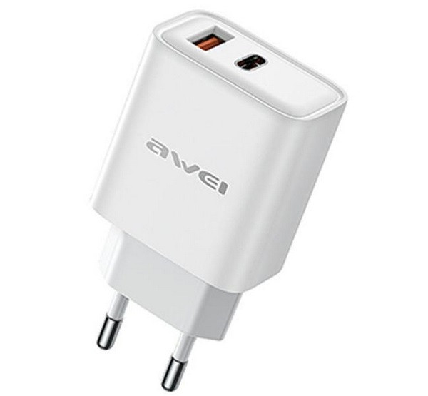 AWEI PD81-EU hálózati töltő USB+Type-C aljzat (22.5W, GaN, PD gyorstöltő) FEHÉR