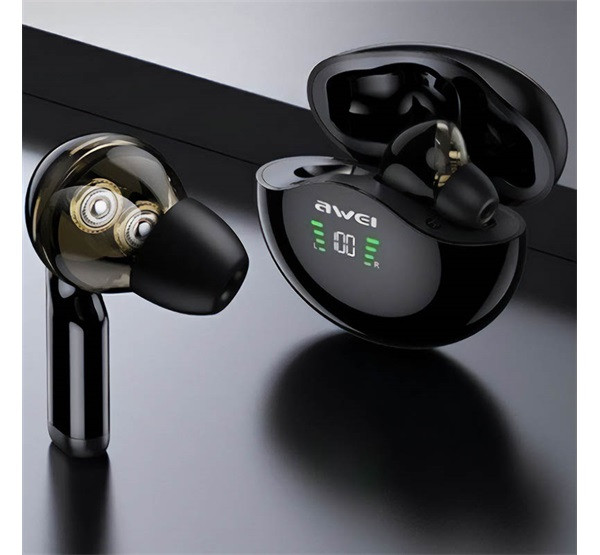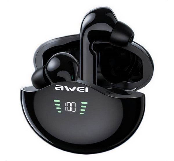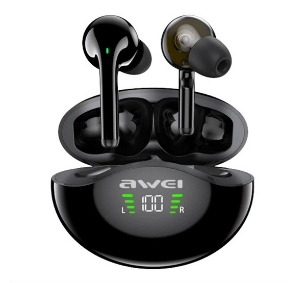 AWEI T12P bluetooth fülhallgató SZTEREO (v5.1, TWS, aktív zajszűrő, vízálló, LED kijelző + töltőtok) FEKETE