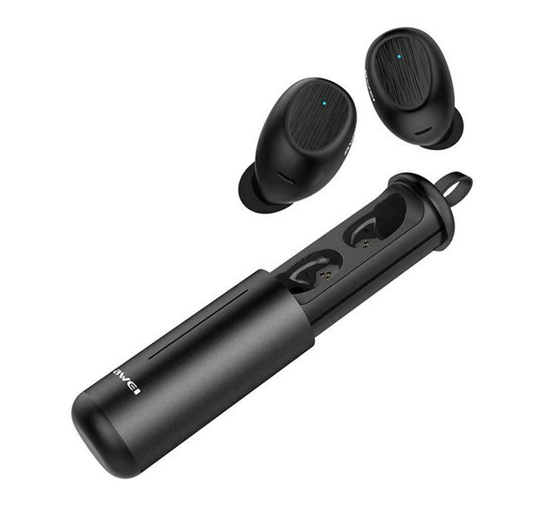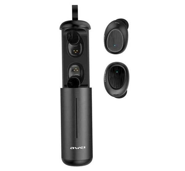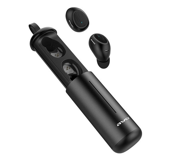 AWEI T55 bluetooth fülhallgató SZTEREO (v5.0, TWS, mikrofon, vízálló, zajszűrő, extra mini + töltőtok) FEKETE