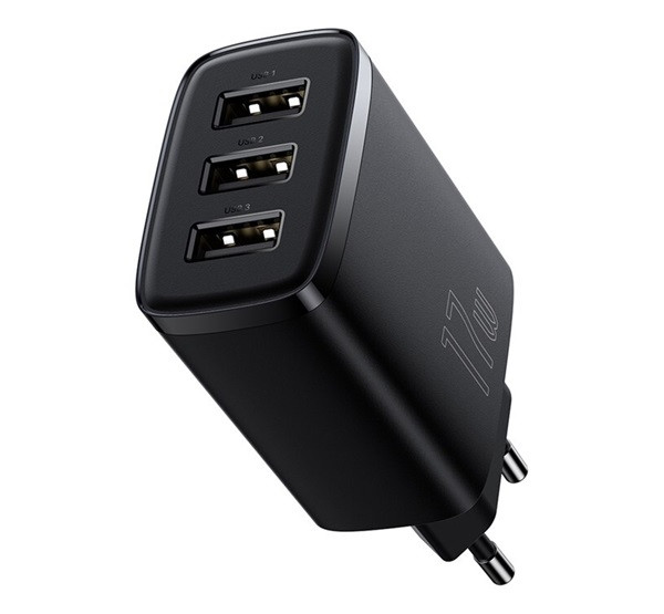 BASEUS COMPACT hálózati töltő 3 USB aljzat (17W, gyorstöltő) FEKETE