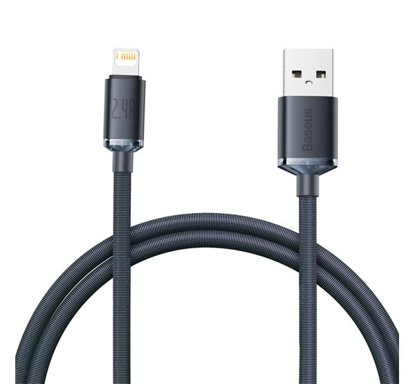 BASEUS CRYSTAL SHINE adatkábel (USB - lightning, 2.4A, PD gyorstöltő, cipőfűző, 120cm) FEKETE