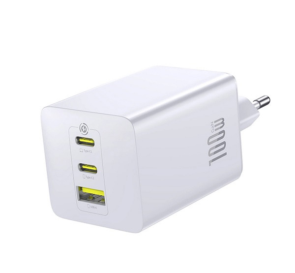 BASEUS ENERFILL FE11 hálózati töltő USB+2 Type-C aljzat (100W, PD gyorstöltő 3.0) FEHÉR