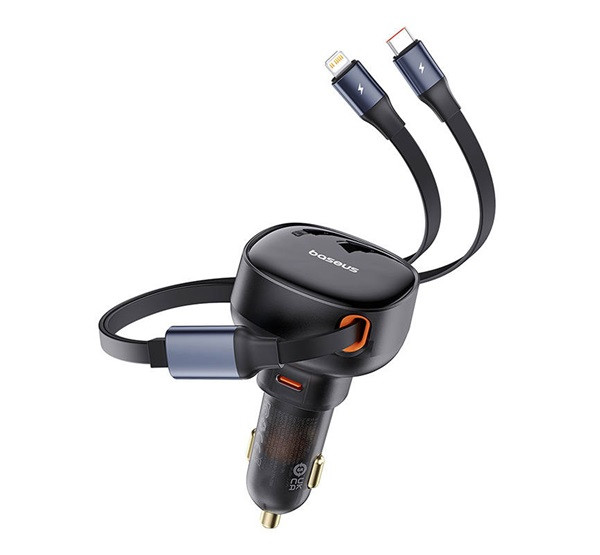 BASEUS ENJOYMENT autós töltő Type-C aljzat (60W, PD gyorstöltő + lapos Type-C - lightning kábel) FEKETE