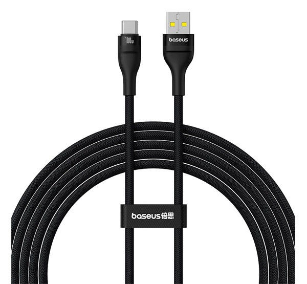 BASEUS FLASH 2 adatkábel (USB - Type-C, 100W, 5A, PD gyorstöltő, törésgátló, cipőfűző, 200cm) FEKETE