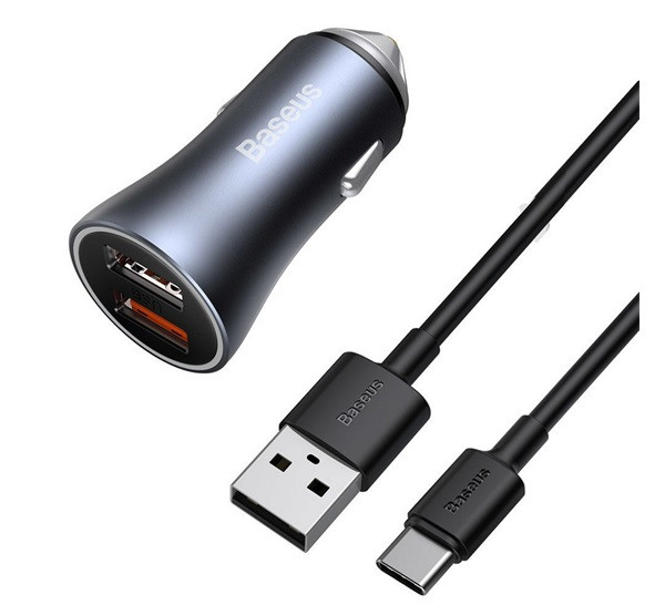 BASEUS GOLDEN CONTACTOR PRO autós töltő 2 USB aljzat (40W, PD gyorstöltő + Type-C kábel) SZÜRKE