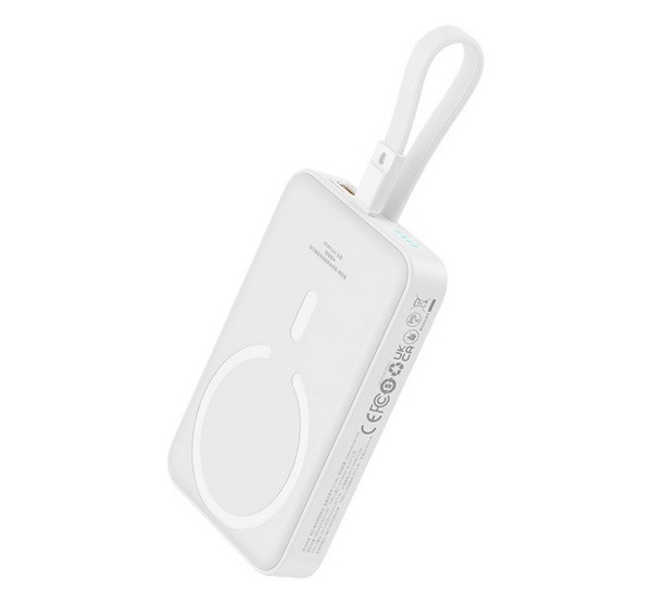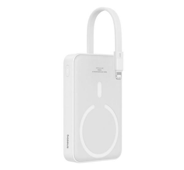BASEUS MAGNETIC MINI vésztöltő Type-C aljzat (10000mAh, 20W, gyorstöltő, wireless, mágneses + fix lightning kábel) FEHÉR