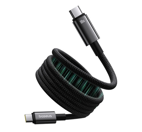 BASEUS TUNGSTEN GOLD MAGNETIC adatkábel (Type-C - Type-C, 100W, PD gyorstöltő, mágneses, törésgátló, 100cm) FEKETE