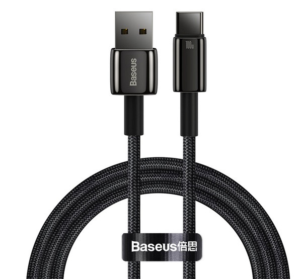 BASEUS TUNGSTEN GOLD adatkábel (USB - Type-C, 100W, gyorstöltő, törésgátló, 100cm) FEKETE