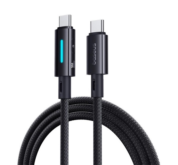 BASEUS adatkábel (Type-C - Type-C, 2.4A, 100W, PD gyorstöltő, cipőfűző, törésgátló, LED kijelző, 100cm) FEKETE