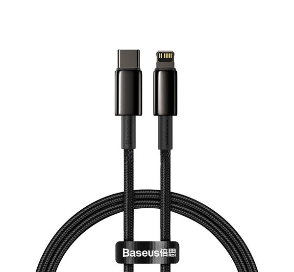 BASEUS adatkábel (Type-C - lightning, 20W, PD gyorstöltő, törésgátló, 100cm) FEKETE
