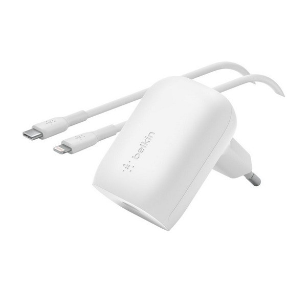 BELKIN BOOST CHARGE hálózati töltő Type-C aljzat (30W, PD gyorstöltő + lightning kábel) FEHÉR