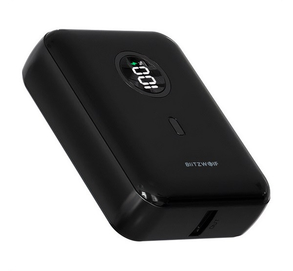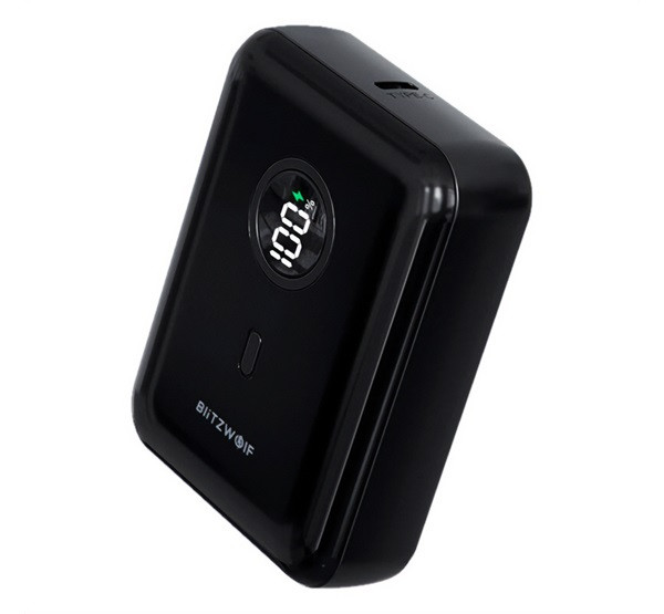 BLITZWOLF BW-P21 vésztöltő Type-C aljzat (10000mAh, 22.5W, 3A, PD gyorstöltő, LED jelzés) FEKETE