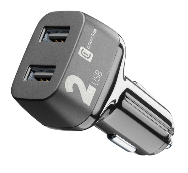 CELLULARLINE autós töltő 2 USB aljzat (2x12W, gyorstöltő) FEKETE