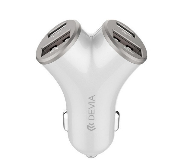 DEVIA EXTREME METAL autós töltő 2 USB+2 Type-C aljzat (48W, PD gyorstöltő 3.0) EZÜST