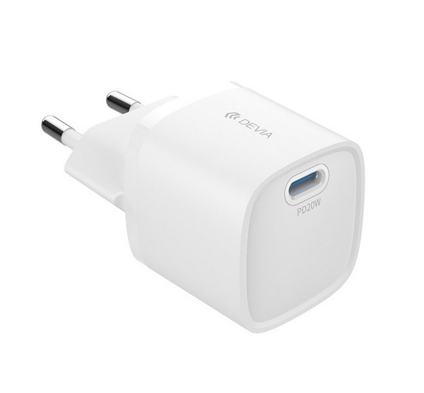 DEVIA EXTREME MINI hálózati töltő Type-C aljzat (20W, GaN, PD gyorstöltő) FEHÉR