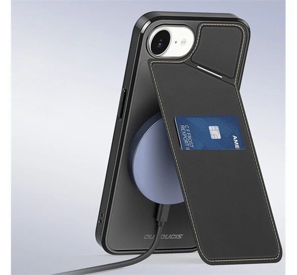 DUX DUCIS RAFI II MAG szilikon telefonvédő (kitámasztó, kártyazseb, RFID, MagSafe) FEKETE