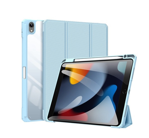 DUX DUCIS TOBY tok álló, bőr hatású (aktív FLIP, oldalra nyíló, TRIFOLD, asztali tartó, ceruza tartó) VILÁGOSKÉK