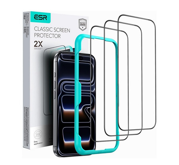 ESR CLASSIC képernyővédő üveg 3db (2.5D, 9H + segédkeret) FEKETE