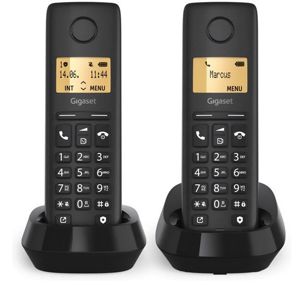 GIGASET PURE 100 DUO telefon készülék (vezeték nélküli, 1 bázis, 2 kézibeszélő, DECT) FEKETE