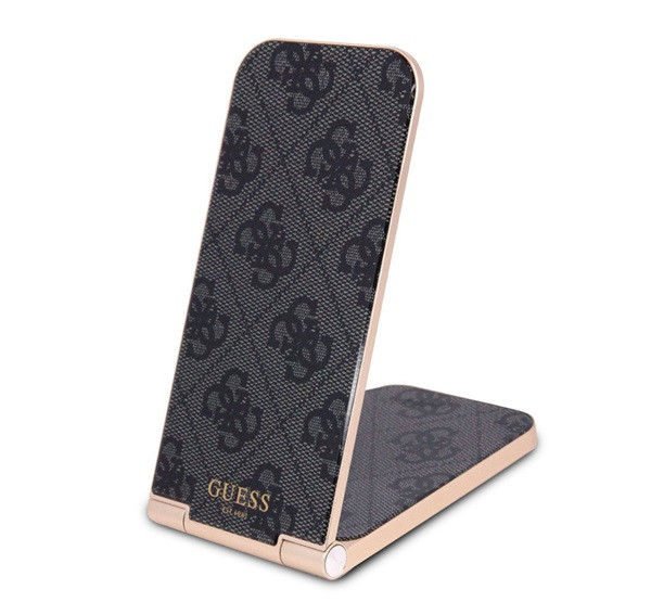 GUESS 4G asztali töltő állvány 2in1 (15W, wireless, 2 eszköz egyidejű töltése, mágneses) FEKETE