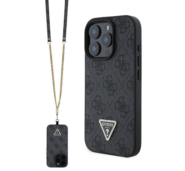 GUESS CROSSBODY szilikon telefonvédő (ütésállóság, bőr hatású hátlap + vállpánt) FEKETE