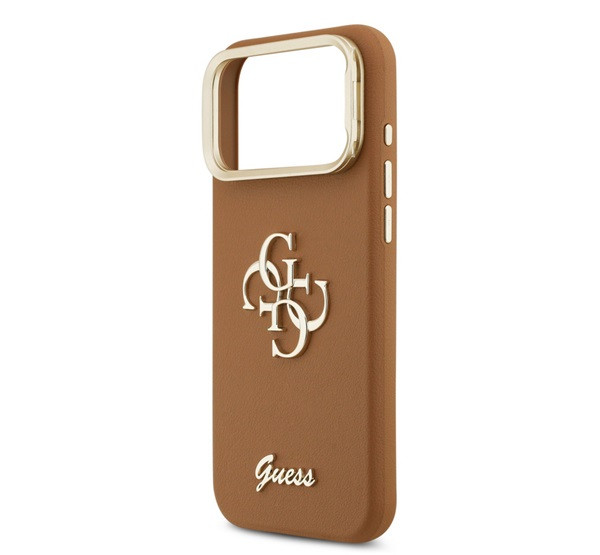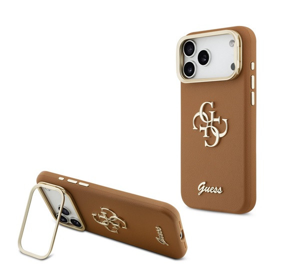GUESS GRAINED BIG 4G & STAND CAMERA szilikon telefonvédő (műanyag hátlap, ECO bőr hatású hátlap, kitámasztó) BARNA