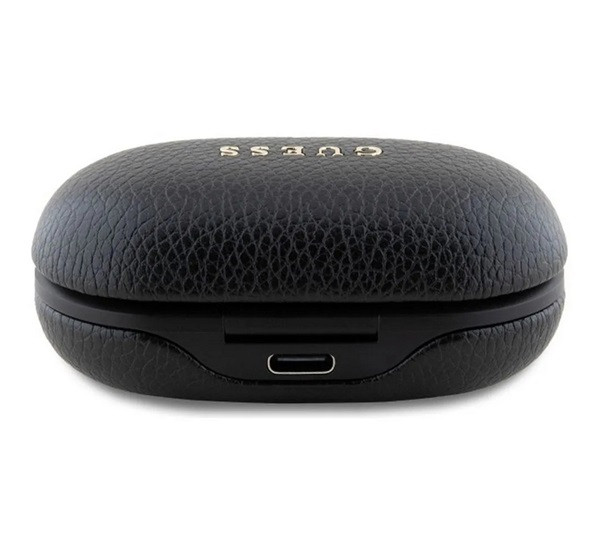 GUESS PU GRAINED bluetooth fülhallgató SZTEREO (v5.3, TWS, mikrofon, zajszűrő, IPX5 + töltőtok) FEKETE
