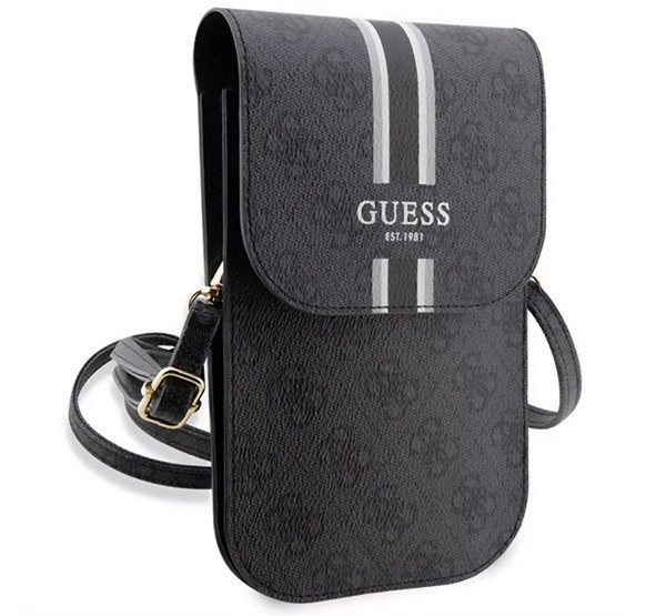 GUESS PU QUILTED 4G METAL LOGO kézitáska álló (univerzális, bőr hatású, vállpánt) FEKETE