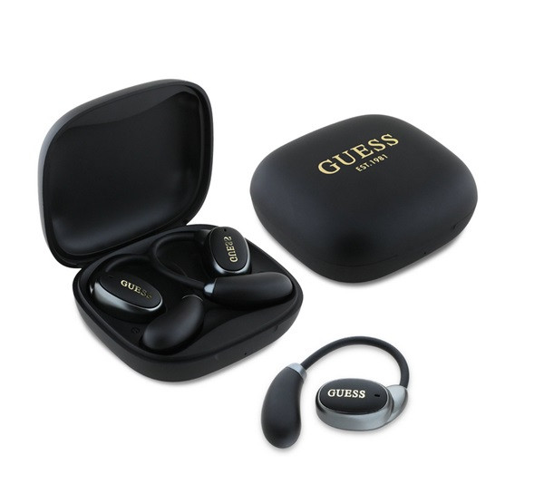 GUESS SATIN CLASSIC LOGO bluetooth fülhallgató SZTEREO (v5.4, TWS, fülre akasztható, mikrofon + töltőtok) FEKETE