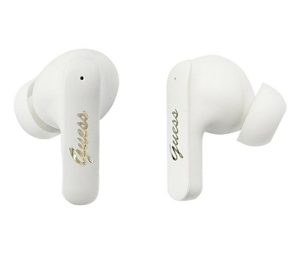 GUESS SCRIPT METAL LOGO bluetooth fülhallgató SZTEREO (v5.4, TWS, mikrofon, fordító funkicó + töltőtok) FEHÉR