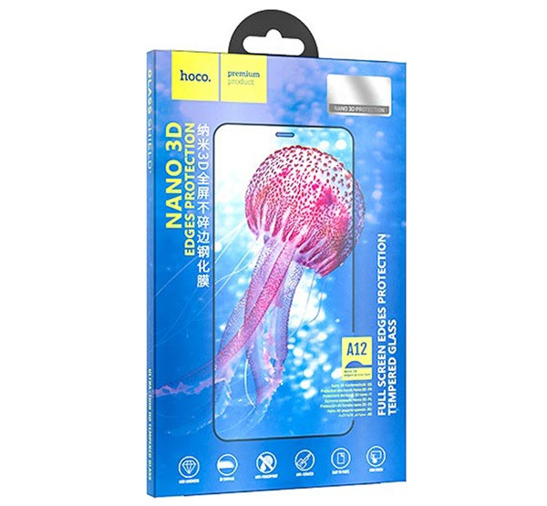 HOCO A12 képernyővédő üveg (3D, 9H) FEKETE