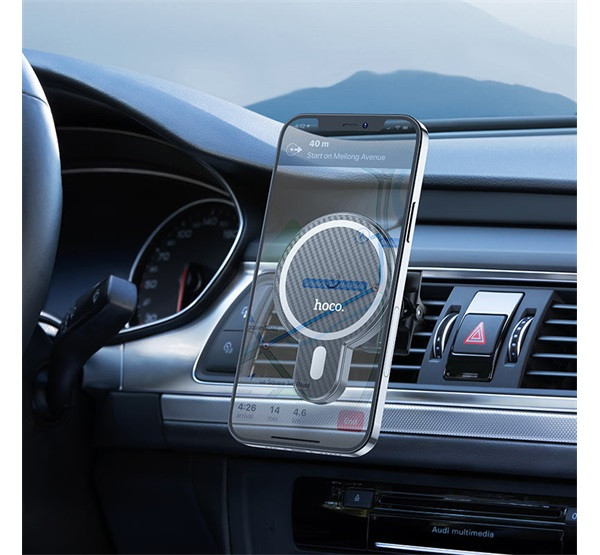 HOCO CA85 autós tartó (szellőzőre, karbon minta, 7.5W, mágneses) FEKETE