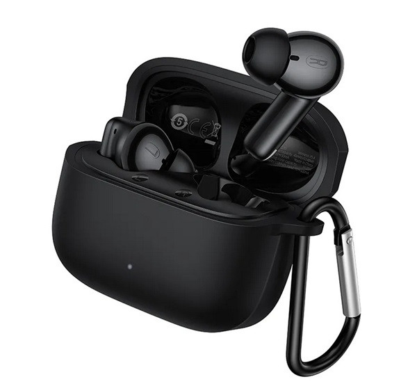 HOCO EQ30 bluetooth fülhallgató SZTEREO (v6.0, TWS, mikrofon, + töltőtok, karabíner) FEKETE