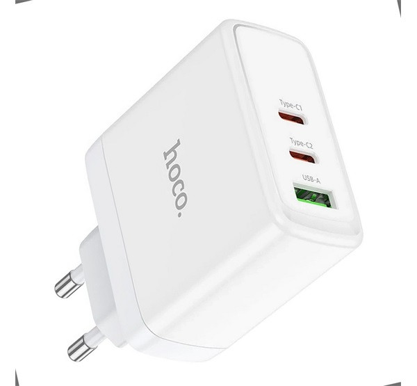 HOCO N30 hálózati töltő USB+2 Type-C aljzat (65W, GaN, PD gyorstöltő 3.0) FEHÉR