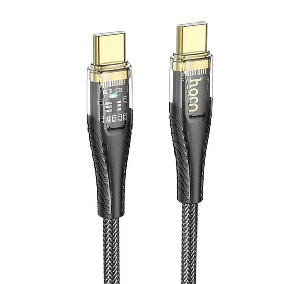 HOCO U121 adatkábel (Type-C - Type-C, 60W, PD gyorstöltő, LED jelzés, cipőfűző, 120cm) FEKETE
