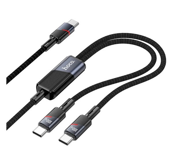 HOCO U139 adatkábel 2in1 (Type-C - 2 Type-C, 100W, PD gyorstöltő 3.0, cipőfűző, 120cm) FEKETE