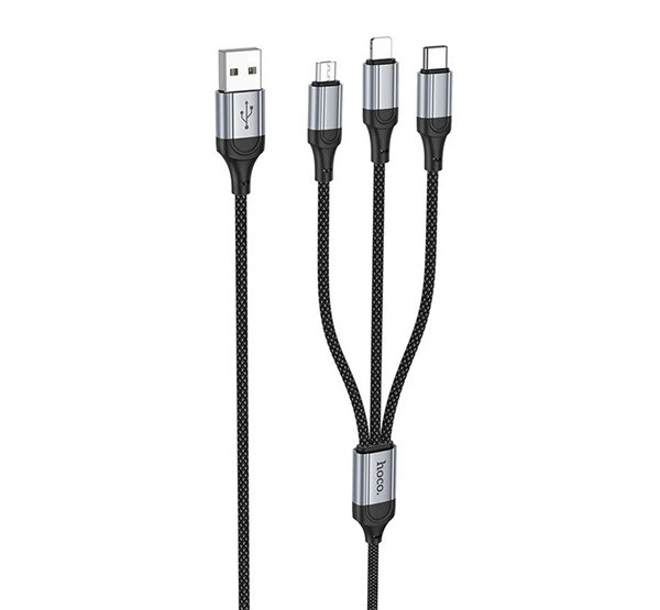 HOCO X102 töltőkábel 3in1 (USB - Type-C/lightning/microUSB, 2.4A, cipőfűző, 100cm) FEKETE