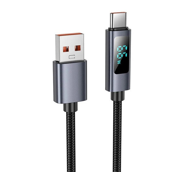 HOCO X112 adatkábel (USB - Type-C, 5A, gyorstöltő, LED kijelző, cipőfűző, 100cm) FEKETE