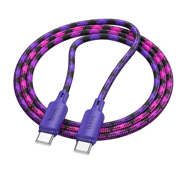 HOCO X116 adatkábel (Type-C - Type-C, 60W, PD gyorstöltő 3.0, cipőfűző, 100cm) LILA
