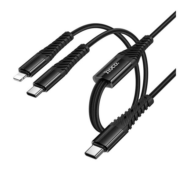 HOCO X123 töltőkábel 2in1 (Type-C - Type-C/lightning, 5V/3A, cipőfűző, 100cm) FEKETE