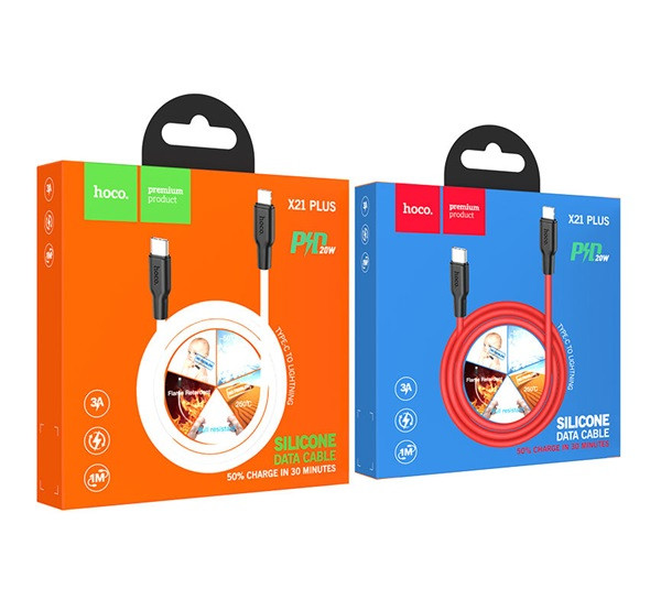 HOCO X21 adatkábel (Type-C - lightning, 3A, 20W, PD gyorstöltő, 100W) FEHÉR
