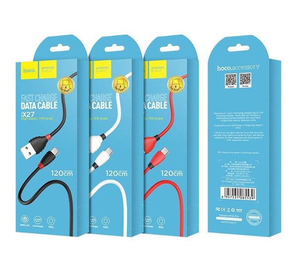 HOCO X27 adatkábel (USB - Type-C, gyorstöltő, törésgátló, 120cm) FEKETE