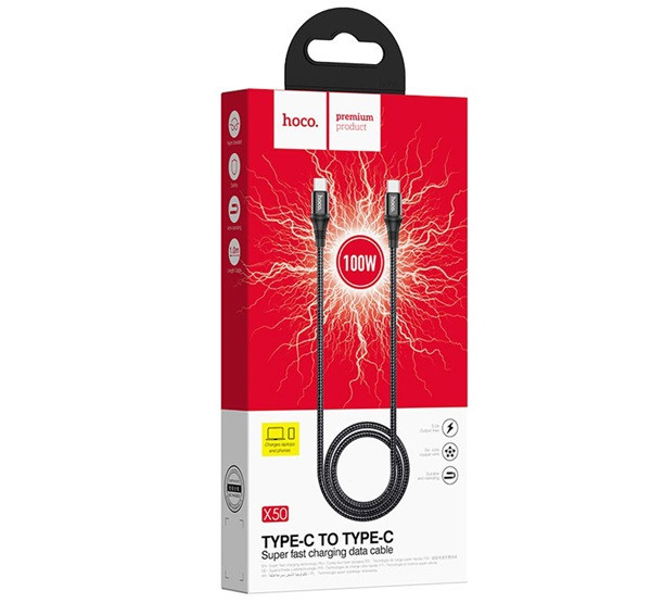 HOCO X50 adatkábel (Type-C - Type-C, PD gyorstöltő, cipőfűző, 100cm) FEKETE