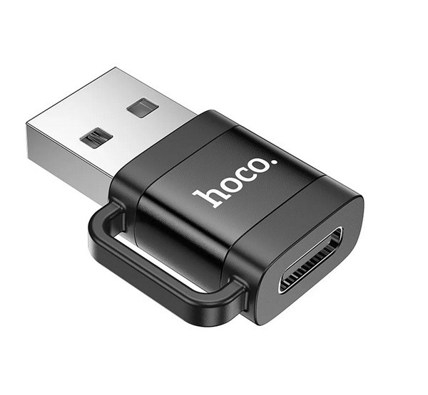 HOCO adapter (USB - Type-C aljzat, adatátvitel és töltés, OTG) FEKETE