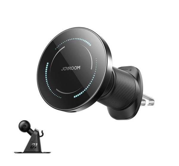 JOYROOM JR-ZS502 autós tartó (műszerfalra, szellőzőre, öntapadó, 360°, 15W, wireless, mágneses) FEKETE